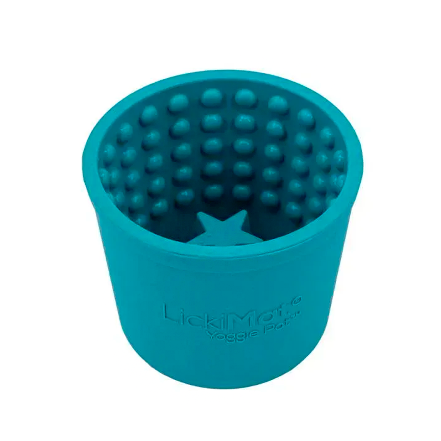 Yoggie Pot - це захоплююче та розважальне пристосування для годування собаки, яке збагачує її досвід через лизання та вивільнення ендорфінів при вживанні різноманітних продуктів.