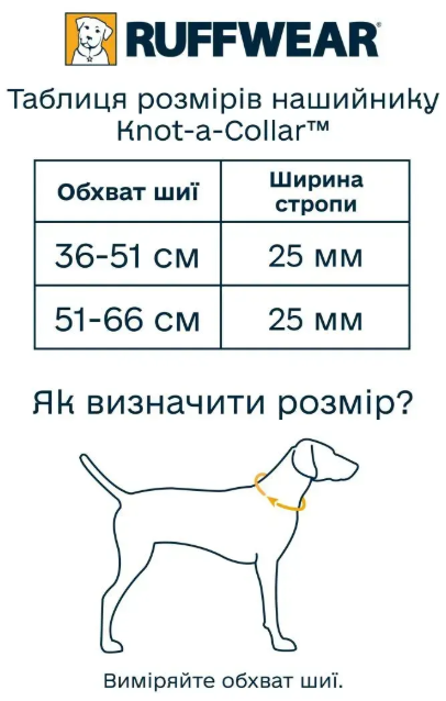 Цей нашийник також оснащений характерними функціями бренду Ruffwear: окремою точкою для кріплення ідентифікаційного жетону, силіконовим фіксатором та алюмінієвим V-подібним кільцем для кріплення повідця, що забезпечує надійне кріплення собаки на повідку.