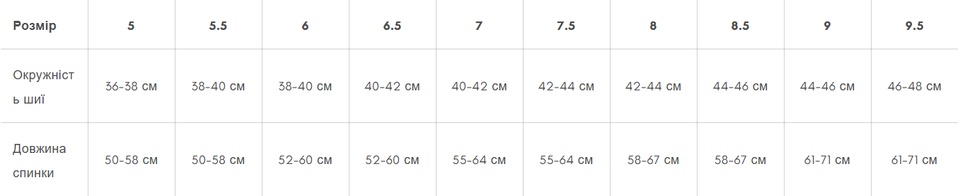 Шлейка Nansen Nome 5.0 доступна в половинних розмірах, які мають однакову довжину спини, але велике коло шиї.