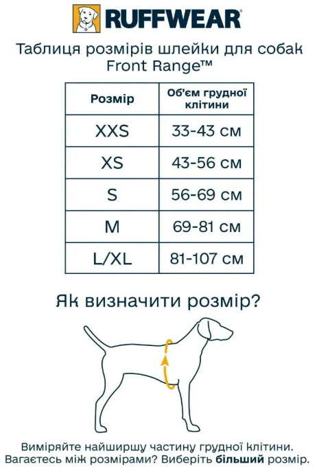 Front Range є м'якою повсякденною шлейкою для собак, яка легко одягається і комфортно сидить на животі собаки.