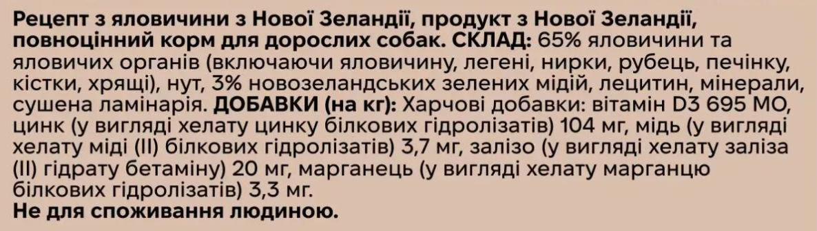 Цей монобілковий рецепт створений з вільновипасної, трав'яної яловичини, вирощеної на етичних фермах серед зелених пасовищ, без гормонів та антибіотиків.