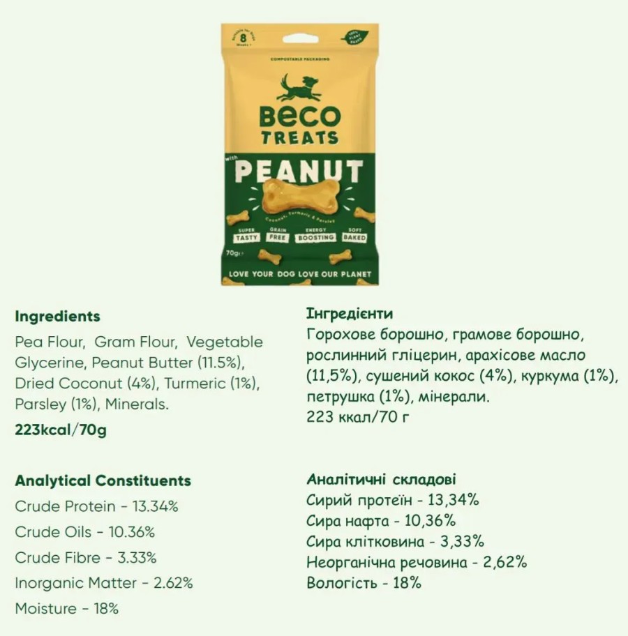 Хрумкий арахіс, супер-куркума та натуральний солодкий кокос – це те, що потрібно вашому собаці, коли ви хочете подарувати йому щось особливе, просто так!