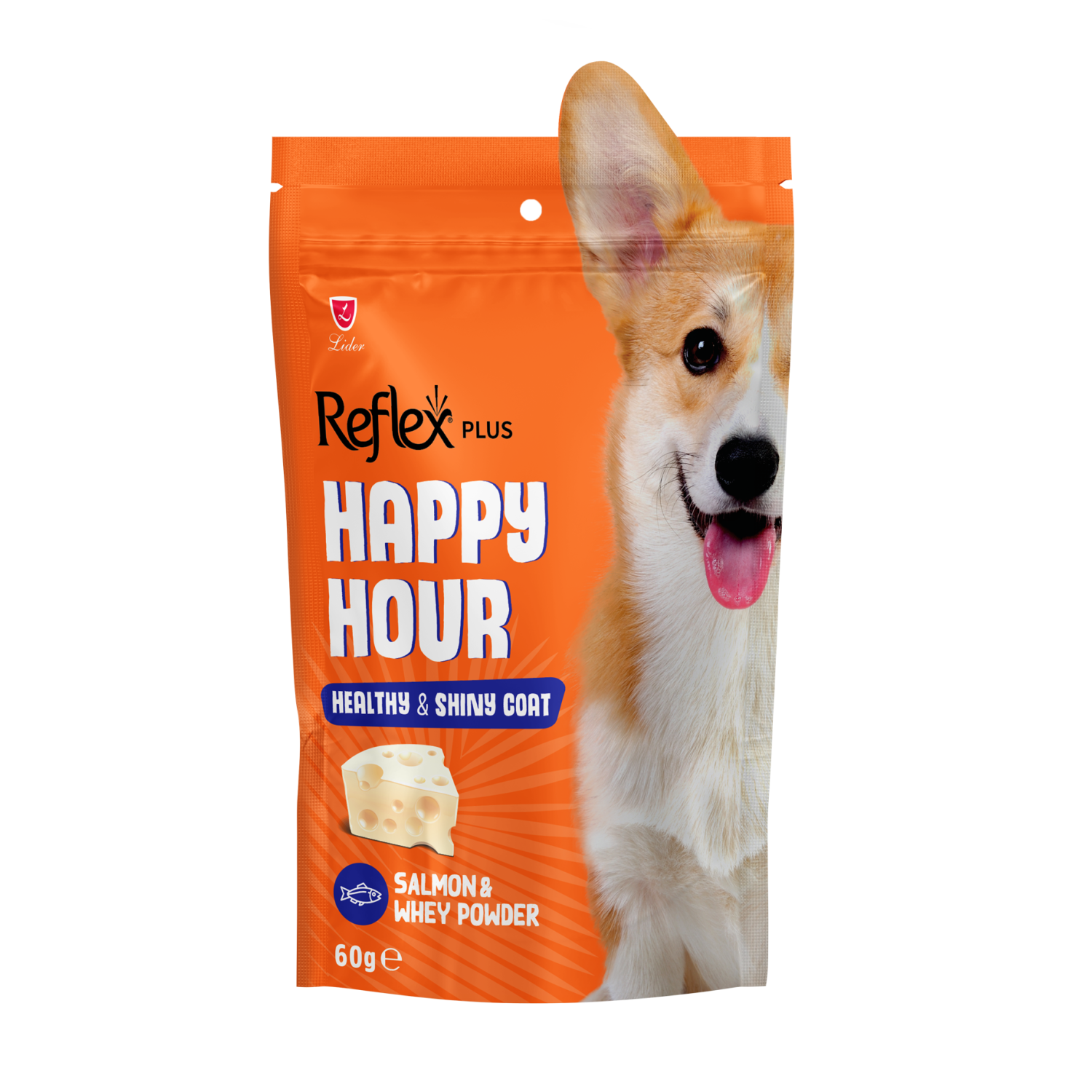 Ласощі для собак з лососем, здорова та блискуча шерсть, розроблені для щасливих годин.