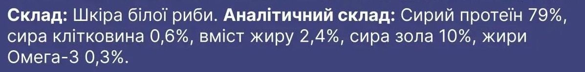 - 100% натуральний склад – виготовлені лише з висушеної рибної шкіри.