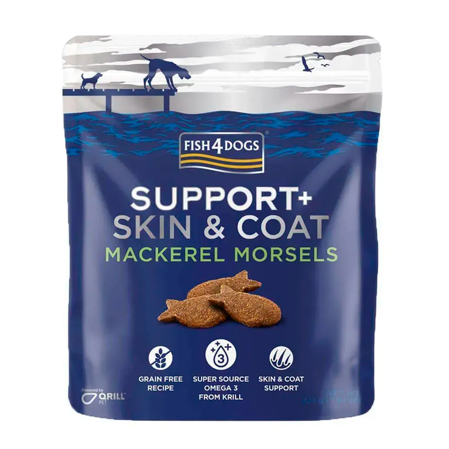 Ласощі Mackerel Morsels входять до лінії Support+, яка спеціально розроблена для підтримки конкретних здоров'я та потреб вашого вихованця. Насолоджуйтесь перевагами здорової шкіри та блискучої вовни вашого собаки з кожним печивом!