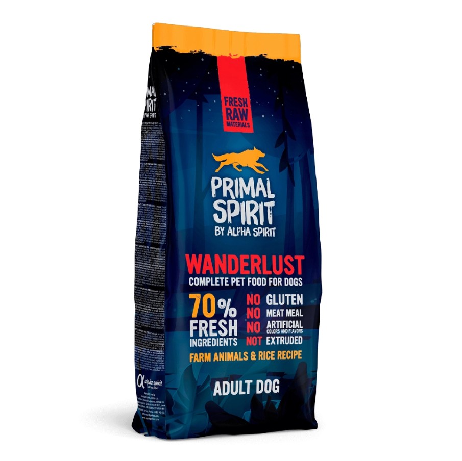 Корм Примал Спиріт 70% Вандерласт виготовляється виключно з натуральних інгредієнтів, з високим вмістом свіжої курятини (50%) та свіжої риби (20%), з додаванням рису, що легко засвоюється, без штучних барвників, ароматизаторів і консервантів.