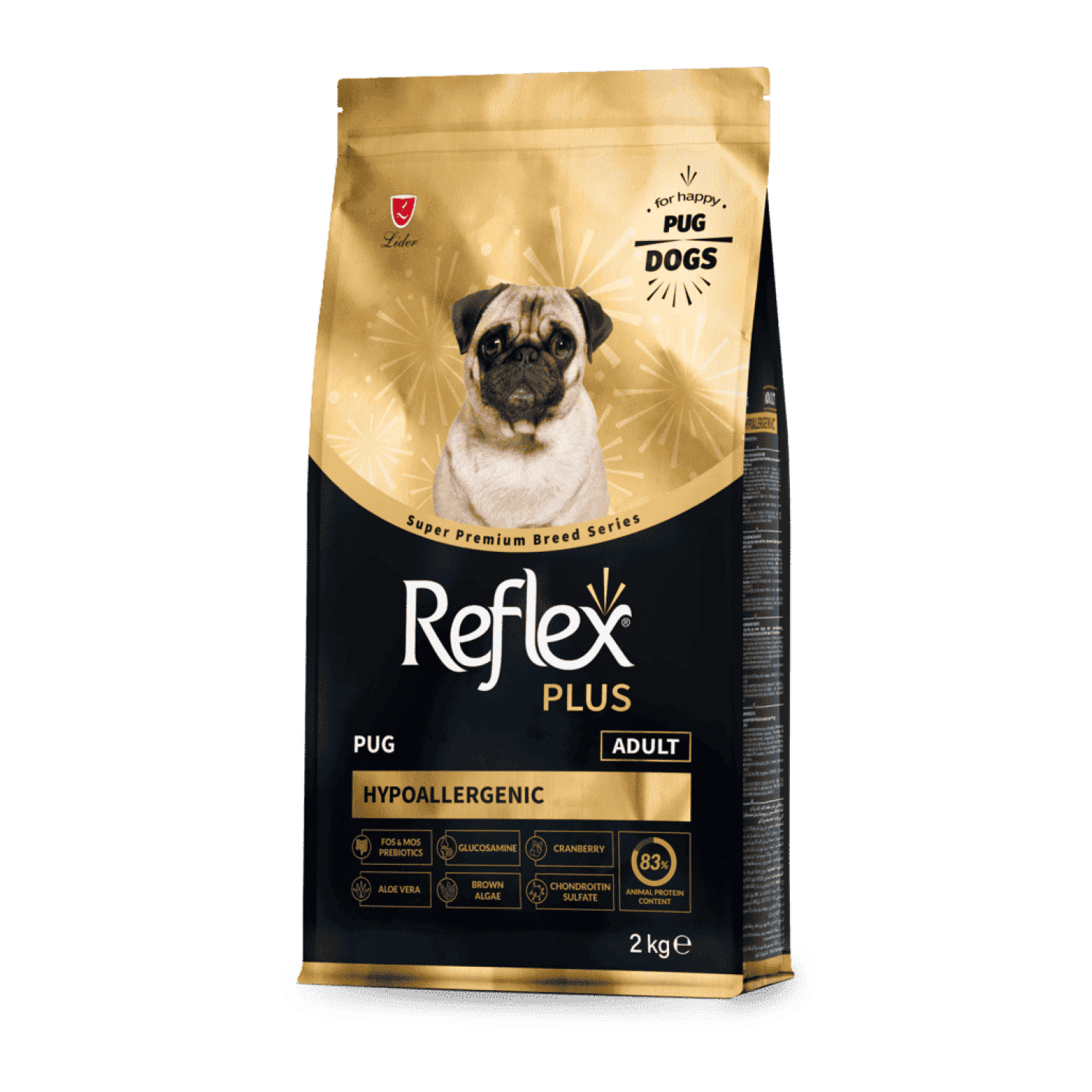 Reflex Plus Pug Adult для дорослих мопсів - це повноцінний та збалансований гіпоалергенний сухий корм супер-преміум класу, спеціально створений для собак породи мопс віком від 10 місяців.