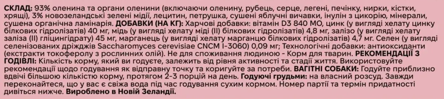 Корм Ziwi Peak Venison Recipe – це ідеальне харчування для собак, створене з високоякісної оленини, вирощеної на природних пасовищах Нової Зеландії.