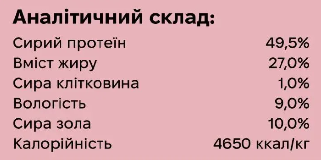 • Омега-3 та Омега-6 жирні кислоти: підтримують здоров'я шкіри, вовни, мозку, зору та імунної системи.