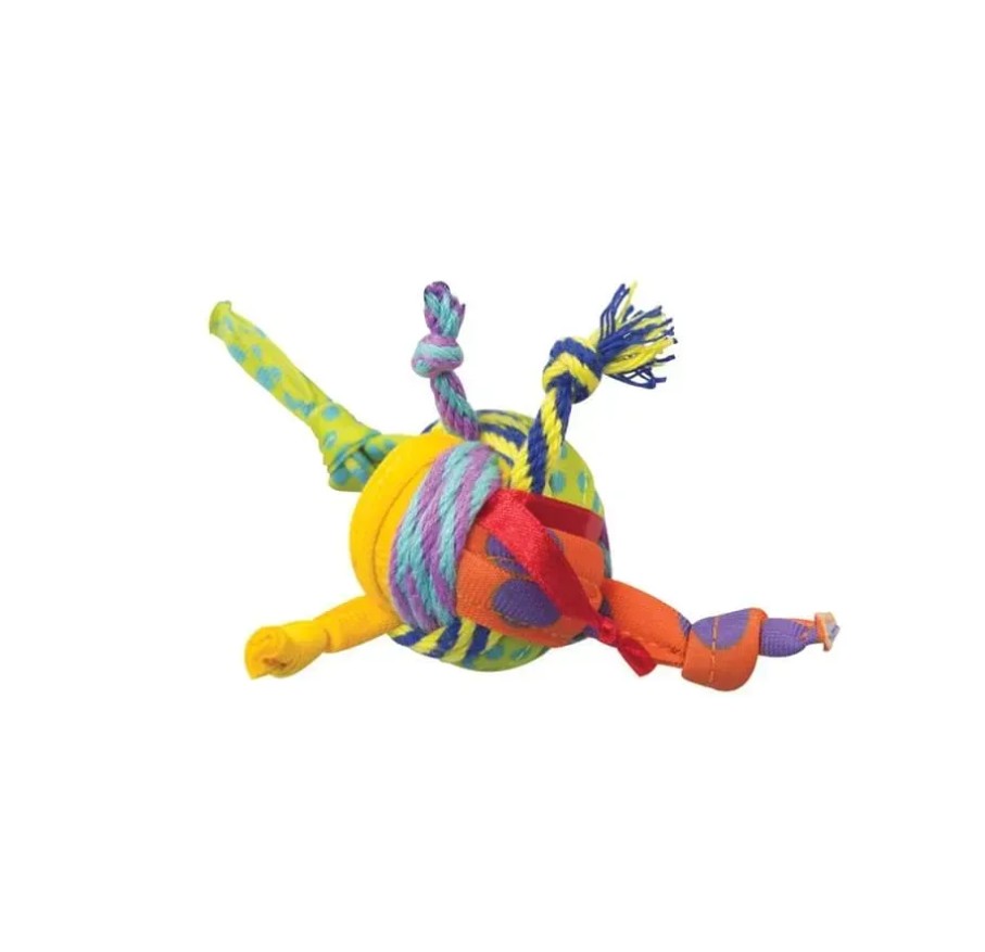 Це весела іграшка для кішок у формі м'ячика з безліччю яскравих «хвостиків-стрічок», які розлітаються в різні боки і пробуджують мисливські інстинкти.