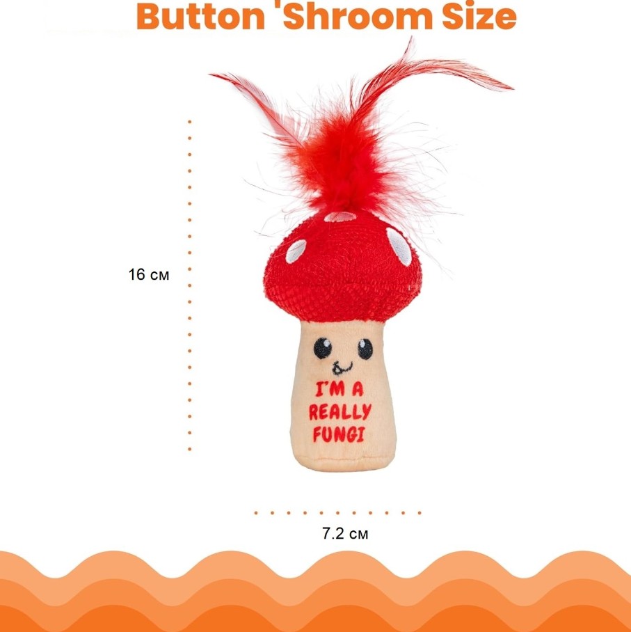 Це іграшка для кішок у формі гриба з пухнастим пір'ям, яка пробуджує природні мисливські інстинкти як у дорослих кішок, так і у кошенят.