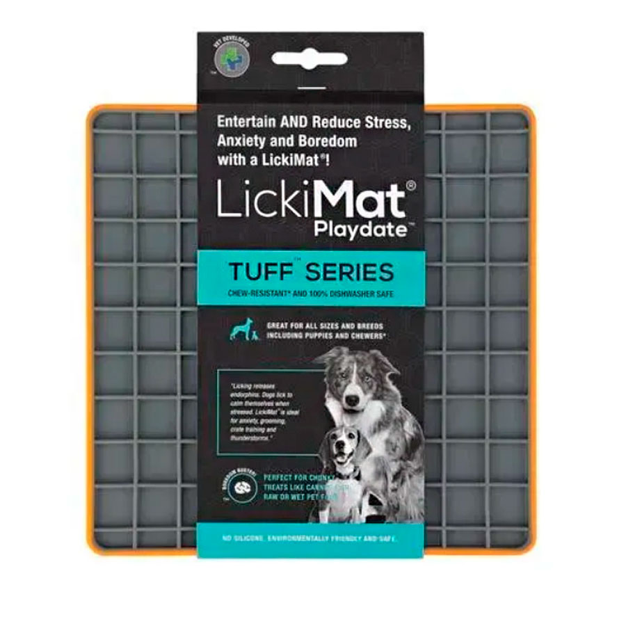 Текстуровані візерунки килимків LickiMat Tuff Playdate розроблені з урахуванням задоволення вашого вихованця та адаптовані для роботи з різними видами ласощів та продуктів, починаючи від йогурту та арахісової олії до різноманітних ласощів.