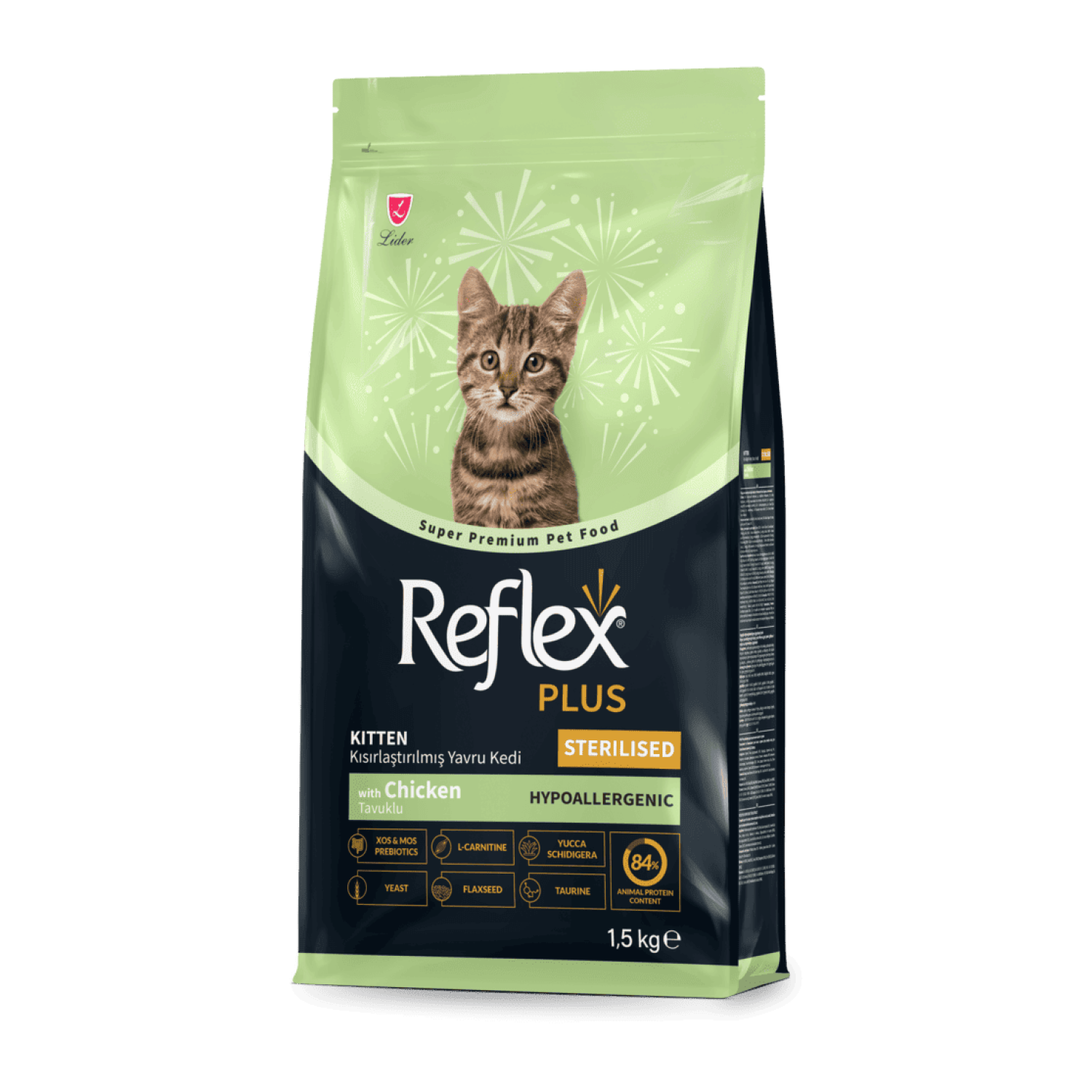 Reflex Plus Kitten Sterilized з куркою - це повноцінний та збалансований сухий корм супер-преміум класу, спеціально розроблений для стерилізованих кошенят віком від 2 до 12 місяців.