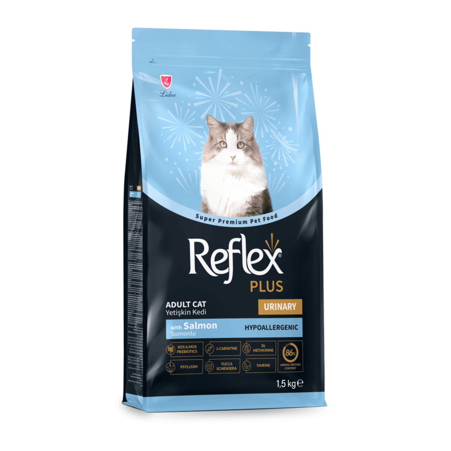 Reflex Plus Urinary Adult з лососем - це повноцінний та збалансований сухий корм супер-преміум класу, призначений для дорослих котів від 12 місяців із чутливою сечовидільною системою.