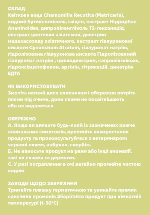 - Надійний м'який засіб, що очищає: М'яко очищає бруд і плями від сліз, підтримуючи гігієну і зовнішній вигляд очей вашого вихованця.