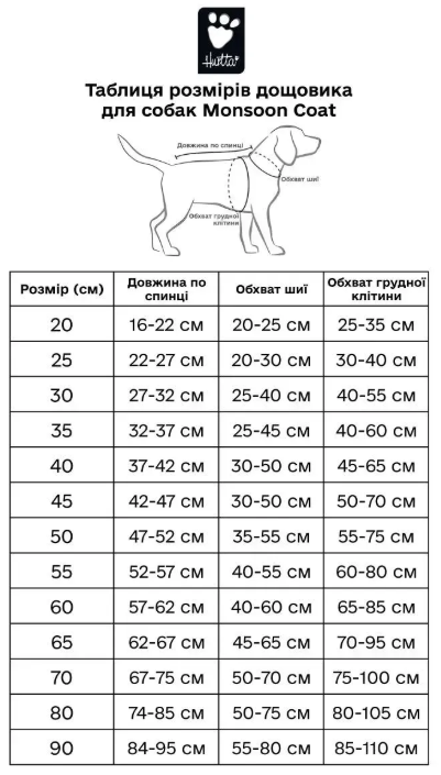 - Комфорт та функціональність: регулювання довжини спини та об'єму коміра дозволяє адаптувати дощовик під індивідуальні параметри вашого вихованця.