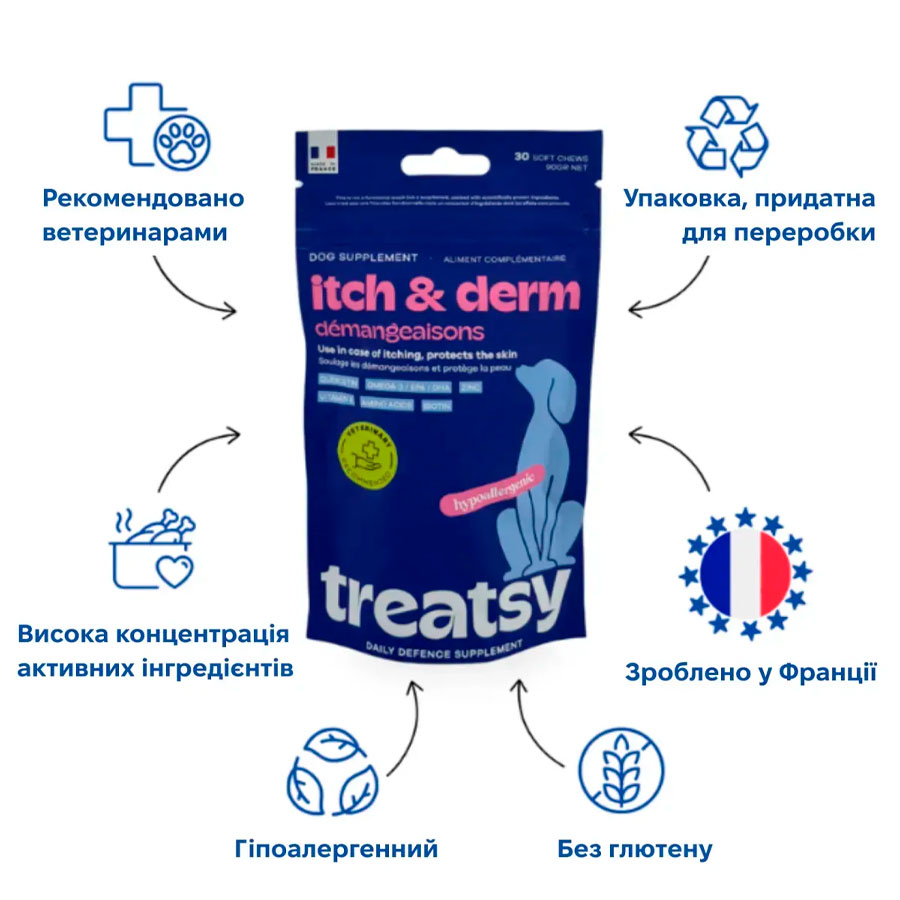 Treatsy Daily Defence Itch & Derm – Здорова шкіра та комфорт для вашого собаки