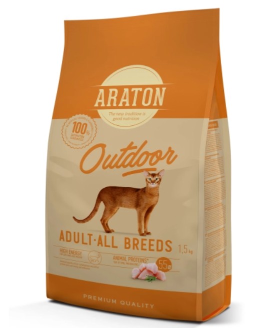 Araton Adult Cat Outdoor – полноценный высококачественный сухой корм для кошек. Рецептуры высококачественных сухих кормов для кошек разработаны таким образом, чтобы корм был и питательным, и вкусным. Новый девиз ARATON гласит: «Хорошее питание – новая традиция». Предлагая своим питомцам ARATON, вы каждый день кормите их тем кормом, который животные едят с удовольствием. Животные, которых кормят полноценным, сбалансированным кормом, являются здоровыми и счастливыми.