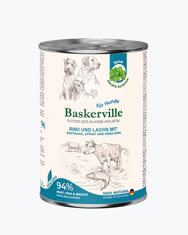 Аппетитный влажный корм с говядиной, лососем, пастернаком, шпинатом и зеленью для собак. Сбалансированный, натуральный рацион, обеспечивающий питомцу отличное физическое состояние.