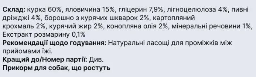 Лакомства легко усваиваются и не содержат искусственных добавок, что делает их идеальным перекусом для молодых собак.