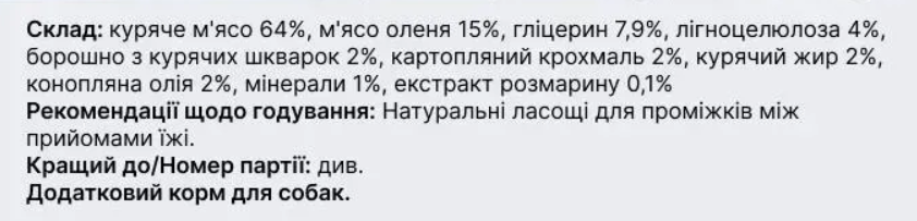 Лакомство не содержит искусственных добавок и прекрасно подходит для собак с чувствительным пищеварением.