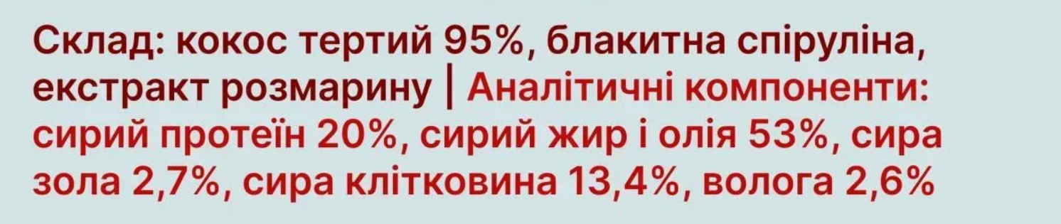 Кокос известен своими полезными свойствами, такими как увлажнение кожи и улучшение состояния шерсти, а голубая спирулина является источником антиоксидантов, поддерживающих ваш любимец в тонусе.